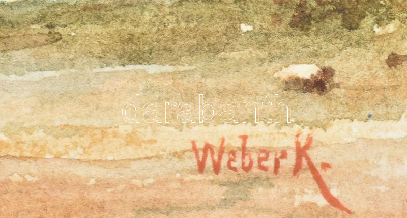 Weber K jelzéssel: Ház. Akvarell, papír, kissé foltos, fakeretben, 23×30,5 cm