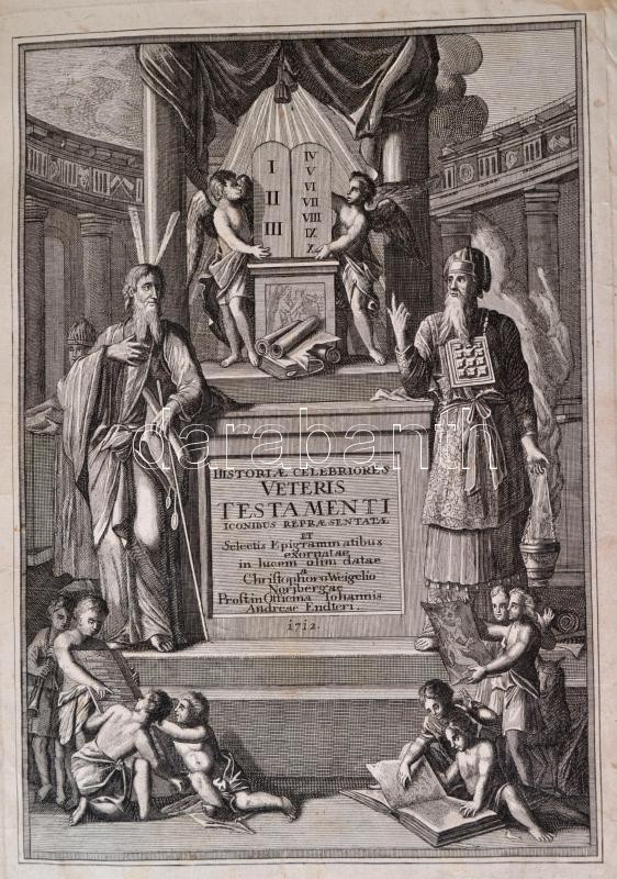 Weigel, Christoph: Historiae Celebriores Veteris Testamenti Iconibus Repraesentatae Et selectis Epigrammatibus exornatae. Nürnberg, 1712. Christoph Weigel. 1 t. (rézmetszetű díszcímlap) + 142 [of 151] t. (rézmetszetű táblák) A barokk Biblia illusztráció-s