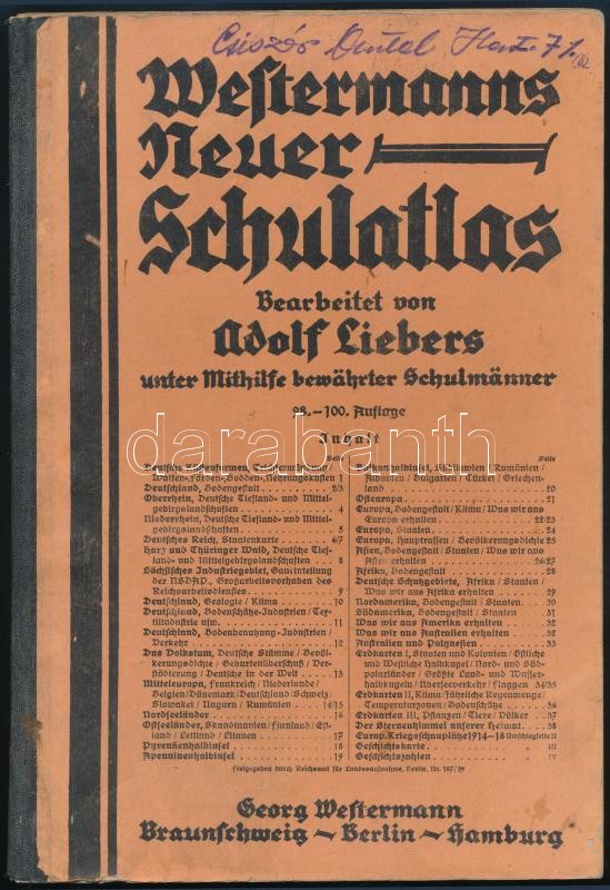 Westermanns Neuer Schulatlas, bearbeitet von Adolf Liebers, 38p<a href="https://www.darabanth.com/hu/gyorsarveres/415/kategoriak~Mutargy-papirregiseg-egyeb/Terkepek~500029/Westermanns-Neuer-Schulatlas-bearbeitet-von-Adolf-Liebers-38p~II2606837/?utm_