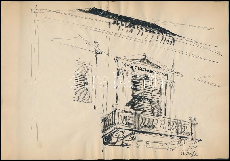 Würtz jelzéssel, 2 db mű: Épületrészletek. Tus, papír. 21×30 cm<a href="https://www.darabanth.com/hu/gyorsarveres/413/kategoriak~Festmenyek-es-grafikak/Festmenyek-es-grafikak-jelzessel-jelzes-nelkul~500002/Wurtz-jelzessel-2-db-mu-Epuletreszletek-Tus
