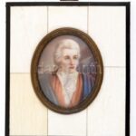 XIX. sz.: Jelzés nélkül: Miniatúra. akvarell, karton. 4×5 cm. csont és réz keretben 9×8 cm / Miniature portrait of a man from the XIX. century. Watercolour on cardboard, framed., 9×8 cm.<a href="https://www.darabanth.com/hu/gyorsarveres/422/kategori