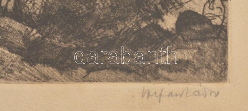 Zádor István (1882-1963): Róma, Angyalvár, 1924. Rézkarc, papír, jelzett, próbanyomat v. mintanyomat (Musterdruck), kissé foltos, lap széle kissé sérült 24×34 cm<a href="https://www.darabanth.com/hu/gyorsarveres/427/kategoriak~Festmenyek-es-grafikak