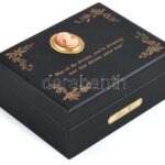 Zenélő ékszertartó doboz, kámeás díszítéssel, 14×11×6 cm