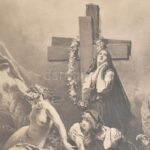 Zichy Mihály (1827-1906) festménye után: Árva leány sorsa. Fénymetszet, papír, jelzett a metszeten. Kiadja az Országos Magyar Képzőművészeti Társulat. Lap alja kisebb szakadással és hátoldala foltos, metszet ép, feltekerve, 67×45,5