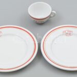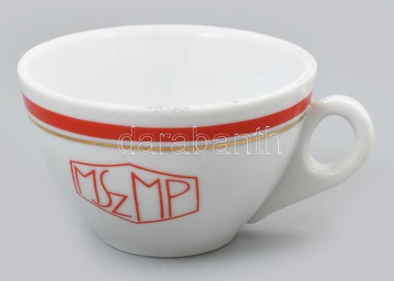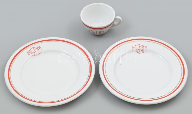 Zsolnay MSZMP feliratos két tányér d: 19 cm, + csésze. Kézzel festett, jelzett, kopott<a href="https://www.darabanth.com/hu/gyorsarveres/421/kategoriak~Porcelan-keramia-uveg/Porcelan~500006/Zsolnay-MSZMP-feliratos-ket-tanyer-d-19-cm-plus-csesze-Kezz