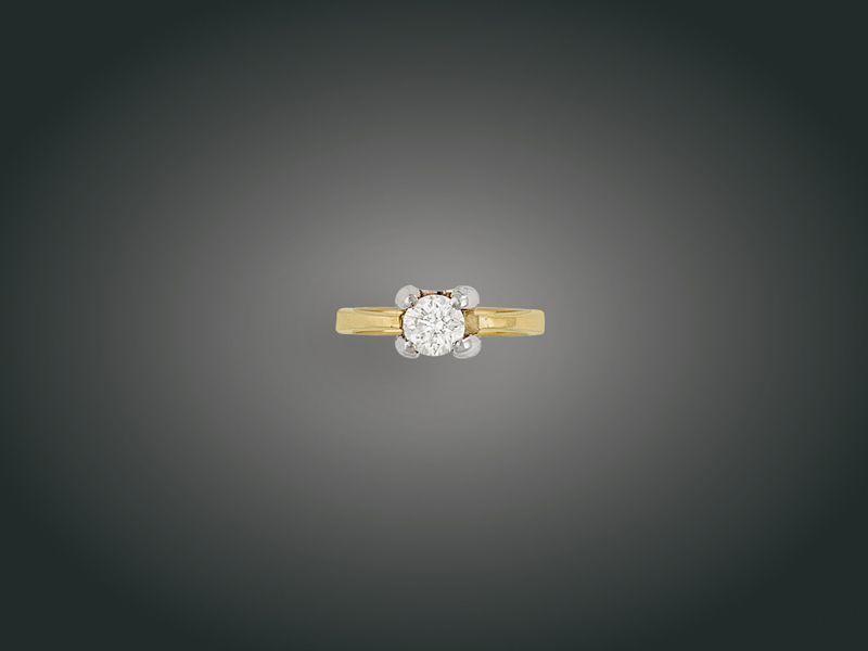 108. tétel, Gyűrű, 14 k au, 1 bril. cca. 0,75 ct, 5,2 g
