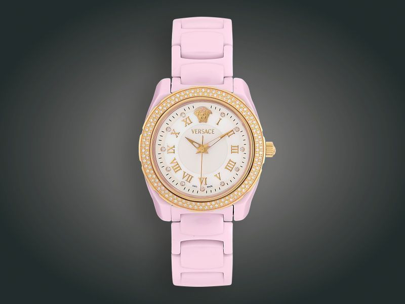 130. tétel, Karóra, Versace, acél, kerámia, 144 bril. cca. 1,0 ct