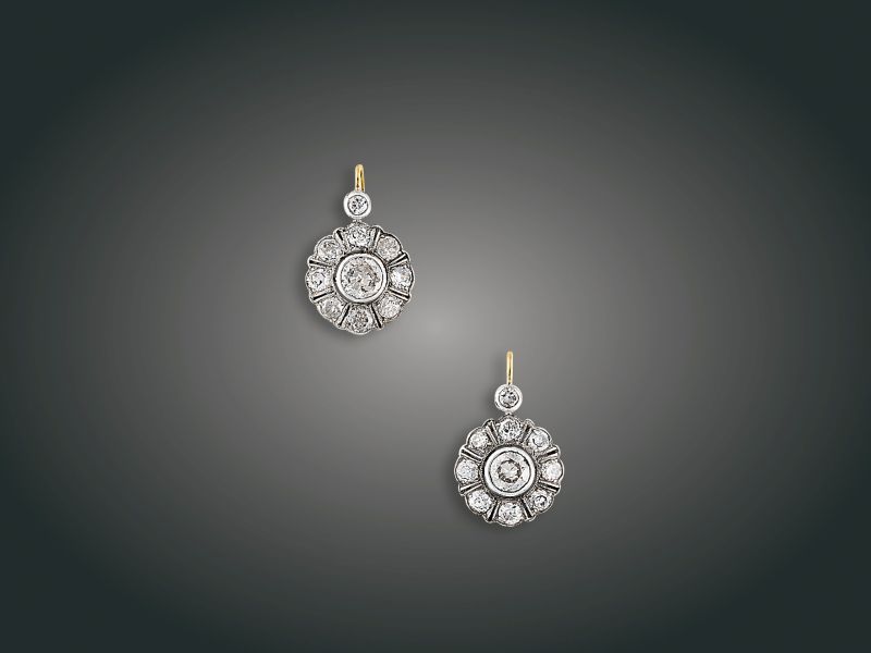 166. tétel, Fülbevaló, 14 k au, 20 bril. cca. 3,20 ct, 4,6 g