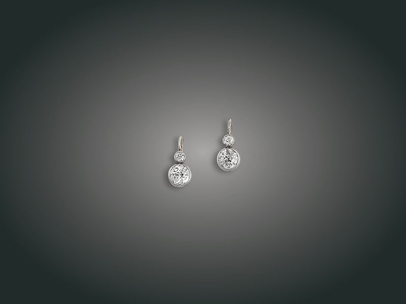 Kikiáltási ár: 65 000 FtBriliáns fülbevalópár Fehérarany 585, buton foglalt 4 szabályos régi csiszolású briliáns cca. 1,00 ct, J, SI1-P1, patentzárral, 2,9 g