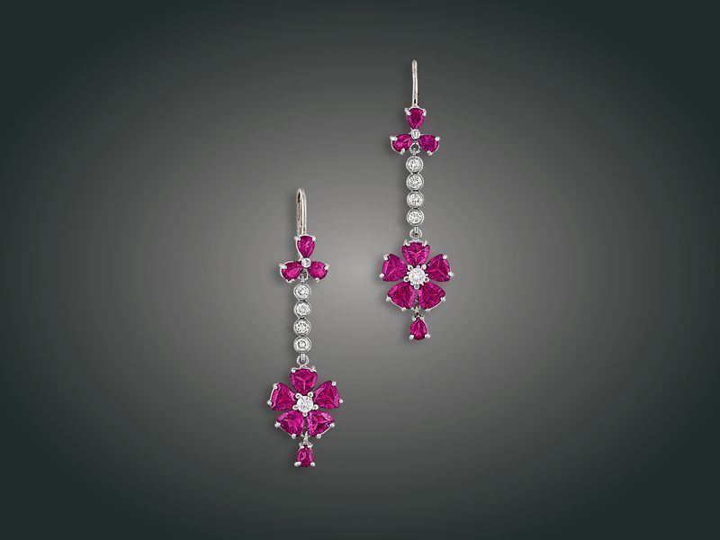 55. tétel, Fülbevaló, 14 k au, almandin, 10 bril. cca. 0,50 ct, 5,8 g