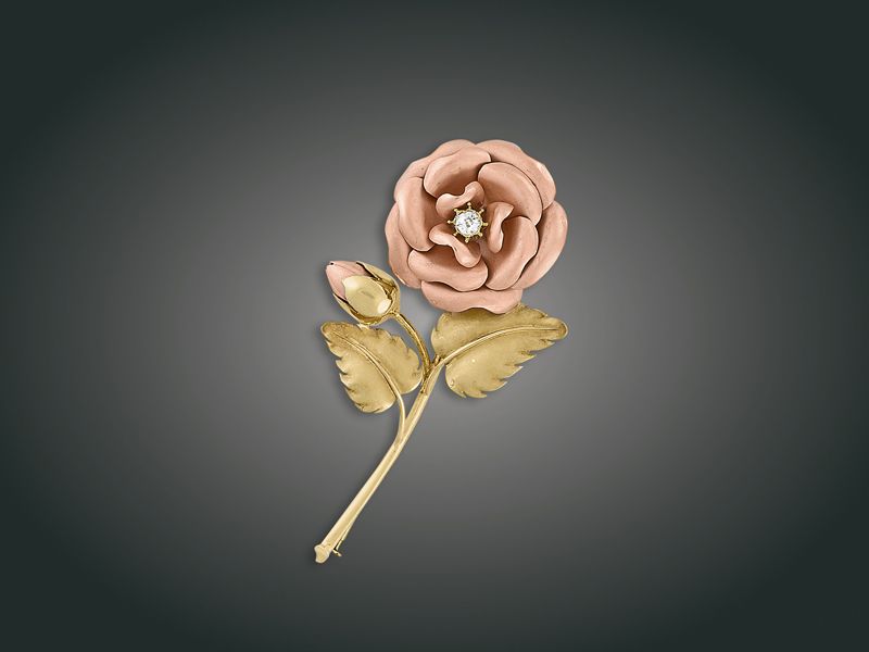 72. tétel, Melltű, 14 k au, 1 bril. cca. 0,25 ct, 19,1 g