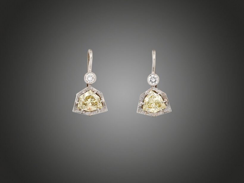 Kikiáltási ár: 220 000 FtBriliáns fülbevalópár Fehérarany 585, buton foglalt 4 szabályos régi csiszolású briliáns cca. 1,00 ct, J, SI1-P1, patentzárral, 2,9 g