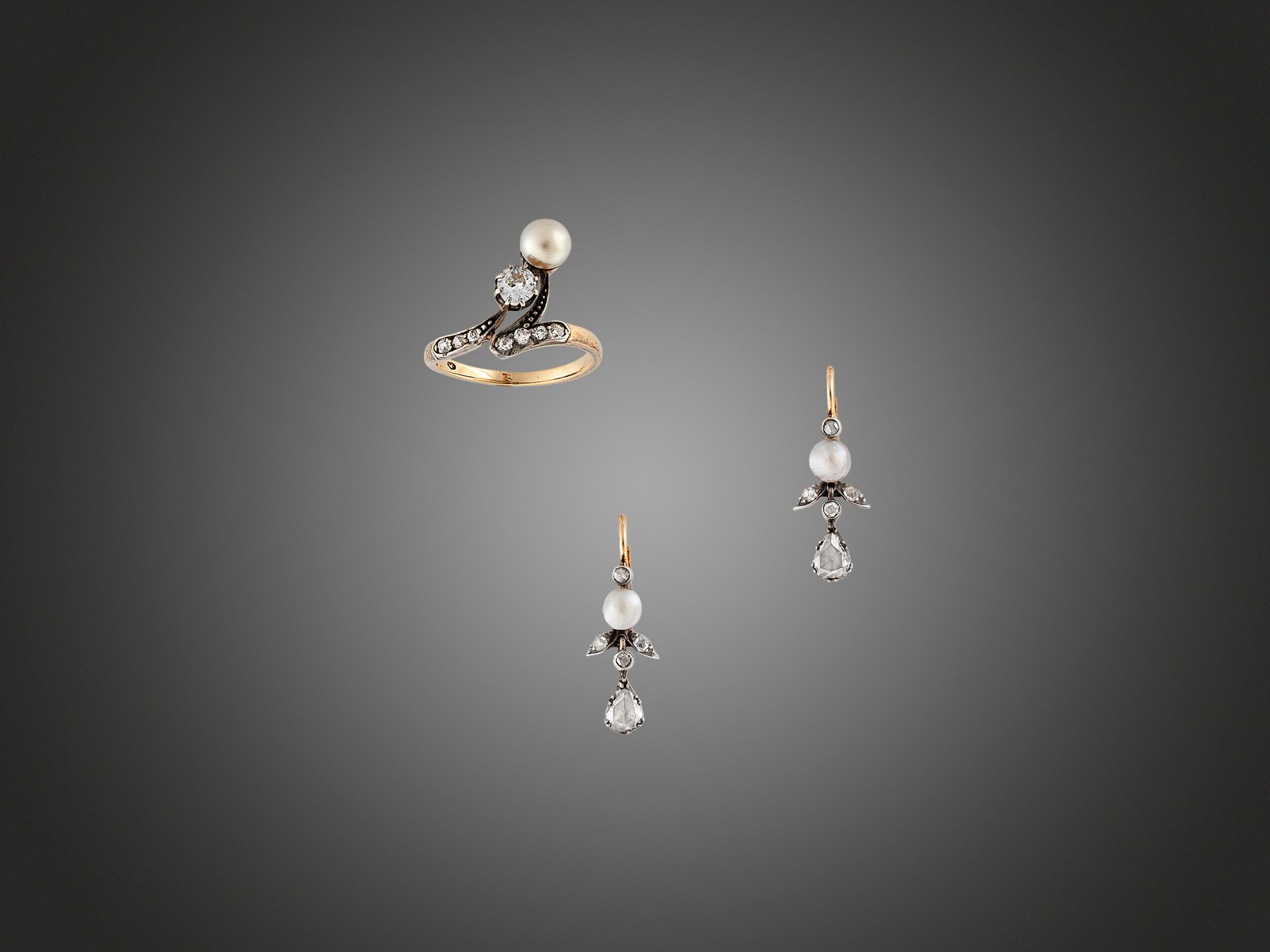 csüngős fazon, 2 kis igaz gyöngy, 10 rózsacsiszolású