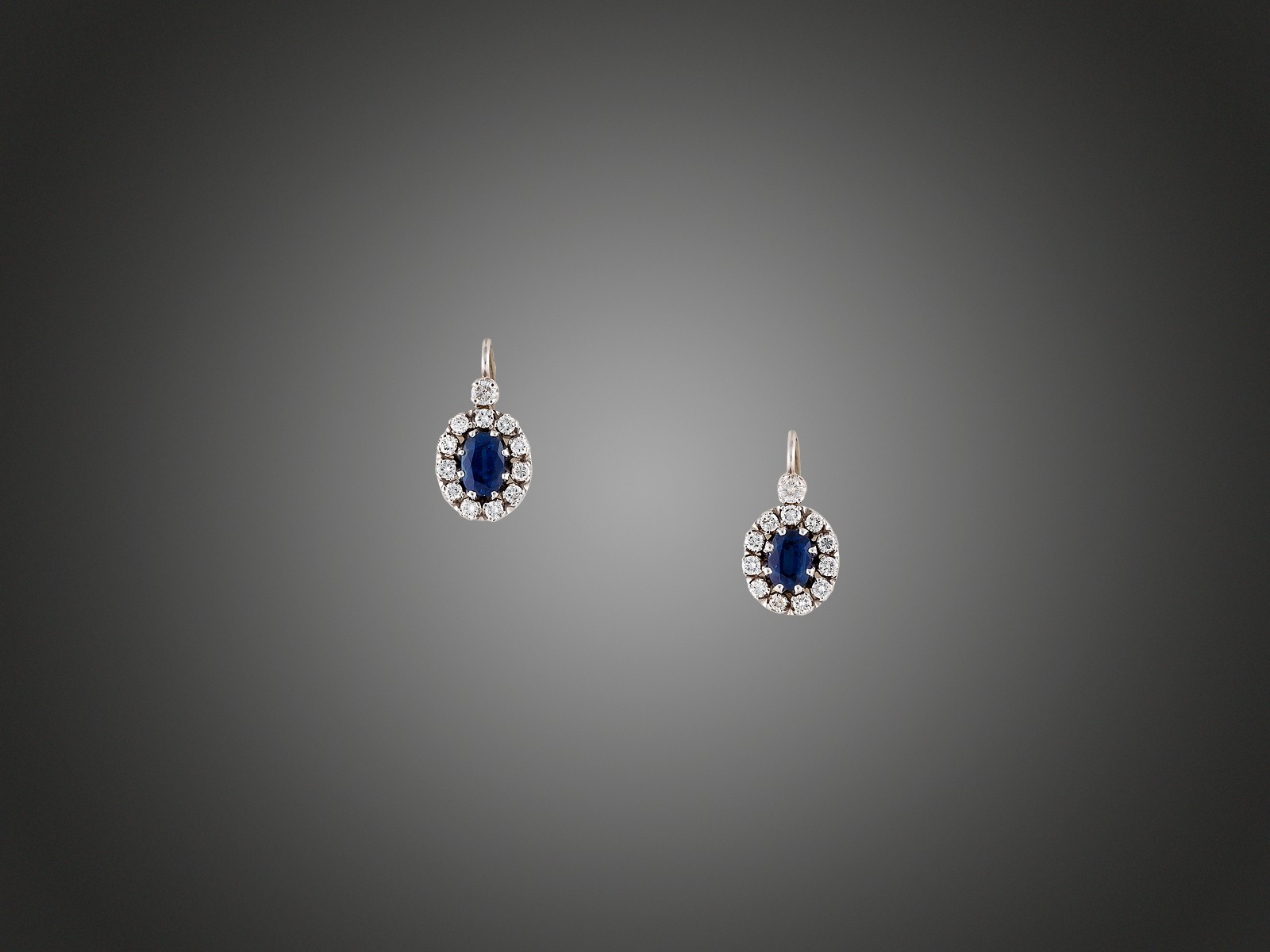 Kikiáltási ár: 65 000 FtSmaragd fülbevalópár Fehérarany 585, 2 ovális smaragd cca. 1,30 ct, 32 modern csiszolású briliáns cca. 0,42 ct, J, SI-P1, 3,1 g