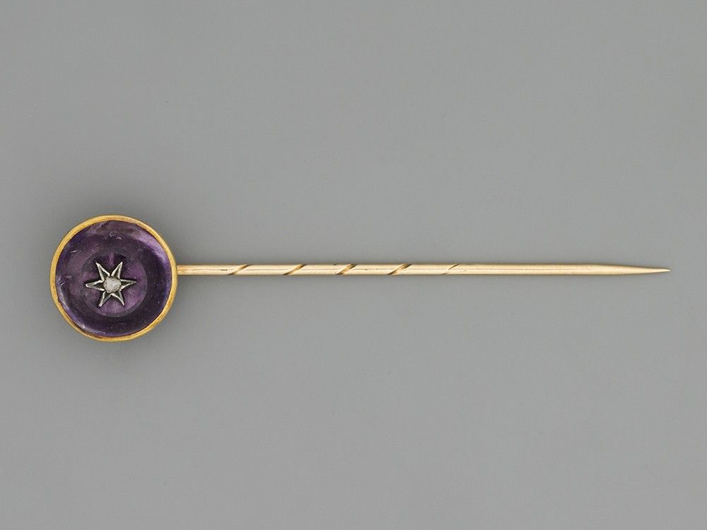 csiszolású ametiszt, közepében csillag foglalatban 1 apró