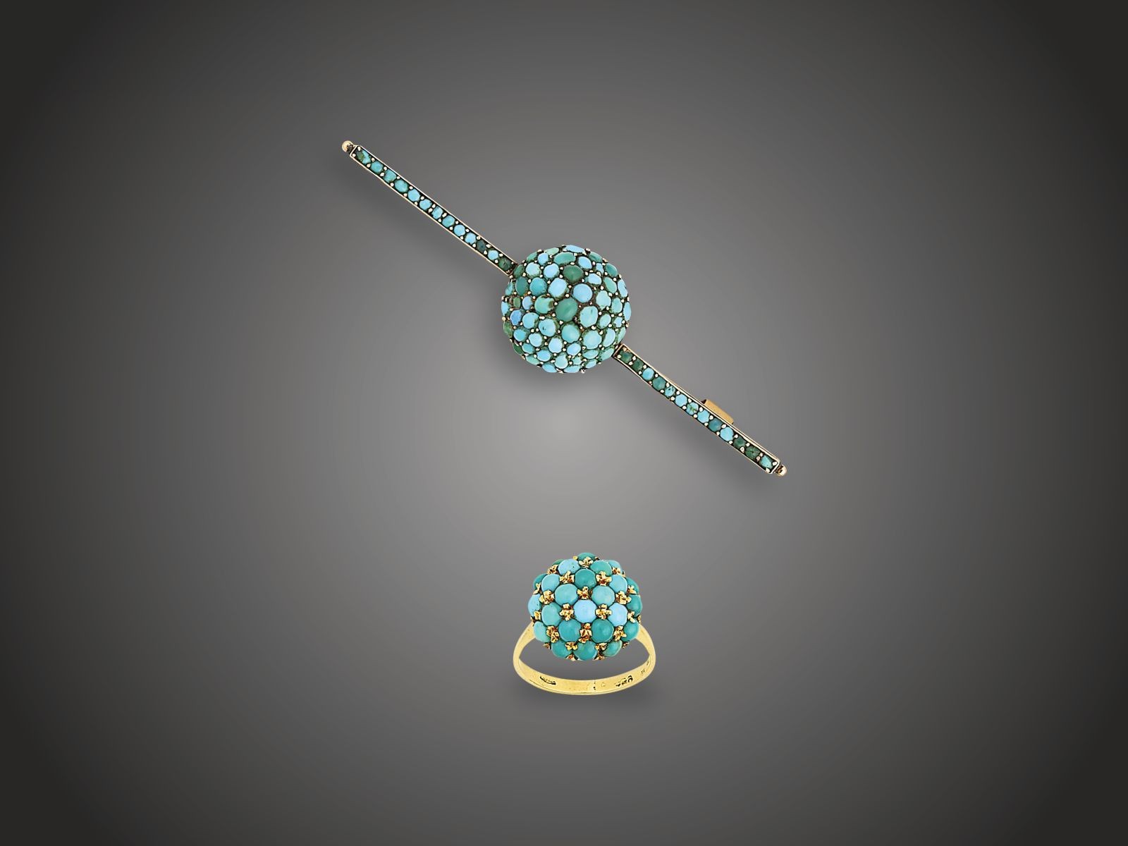 Arany 750, gyűrű pave foglalt türkizekkel, 5,1 g,_x000D_