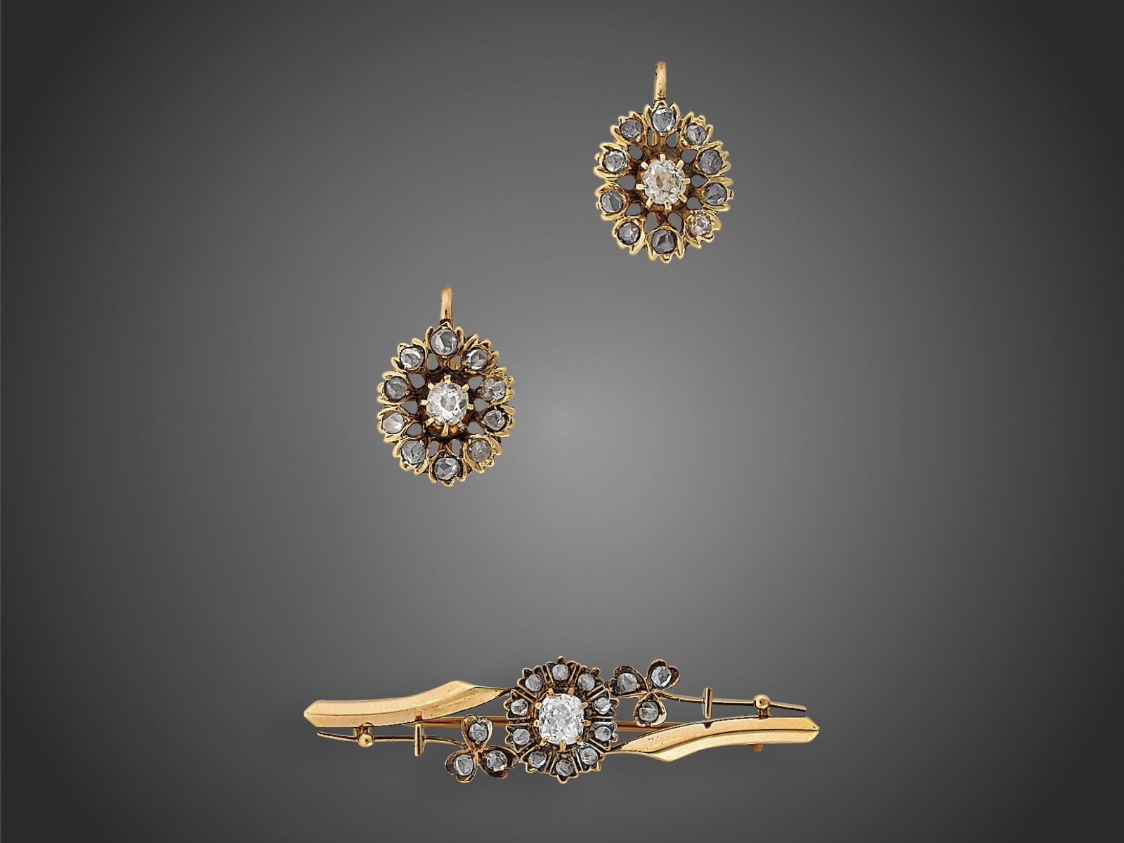 Arany 580, melltű és fülbevaló pár, rozetta fazonok, 3_x000D_