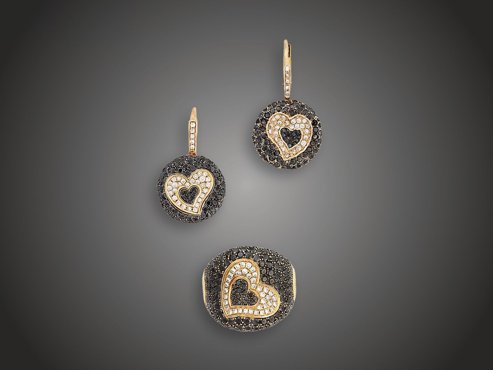 foglalt színtelen és fekete briliáns ékítéssel, arany 585,_x000D_