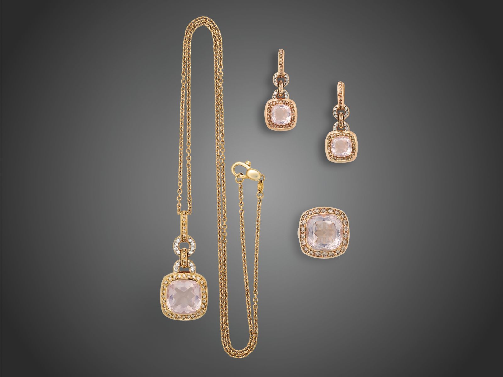 rózsakvarc, 104 pezsgőszínű, 30 színtelen briliáns_x000D_