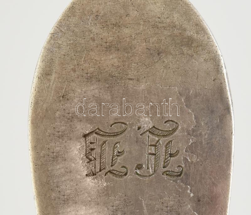 Ezüst (Ag) antik tejmerőkanál, jelzett, h: 22,5 cm, nettó: 101,1g<a href="https://www.darabanth.com/hu/gyorsarveres/439/kategoriak~Nemesfem-disztargyak-ekszerek-dragakovek/Nemesfem-disztargyak-ekszerek-dragakovek~1500003/Ezust-Ag-antik-tejmerokanal-