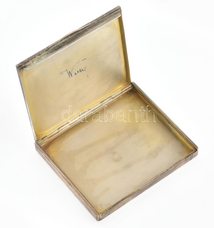 Ezüst (Ag) cigaretta tárca. Jelzett 127 g 9×7,5 cm<a href="https://www.darabanth.com/hu/gyorsarveres/439/kategoriak~Nemesfem-disztargyak-ekszerek-dragakovek/Nemesfem-disztargyak-ekszerek-dragakovek~1500003/Ezust-Ag-cigaretta-tarca-Jelzett-127-g-9×7-