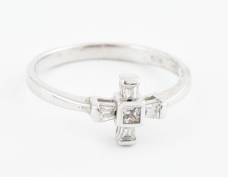 Ezüst (Ag) gyűrű kőékítéssel, jelzett, méret: 54, bruttó: 1,8 g<a href="https://www.darabanth.com/hu/gyorsarveres/438/kategoriak~Nemesfem-disztargyak-ekszerek-dragakovek/Nemesfem-disztargyak-ekszerek-dragakovek~1000028/Ezust-Ag-gyuru-koekitessel-jel