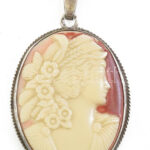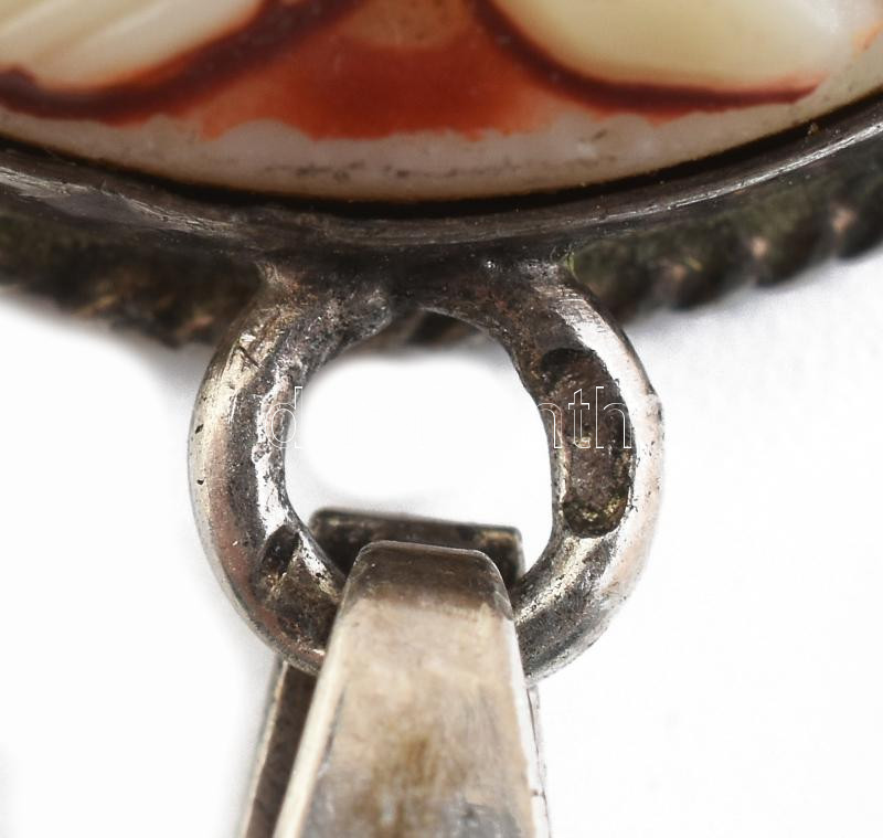 Ezüst (Ag) nyaklánc, celluloid kámea berakásos medállal, jelzett, bruttó: 21,5 g