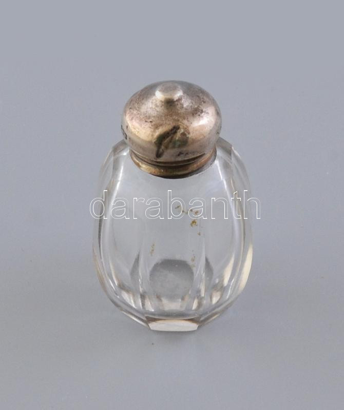 Ezüst (Ag) tetejű kozmetikai üvegcse, jelzett, m: 8 cm<a href="https://www.darabanth.com/hu/gyorsarveres/438/kategoriak~Nemesfem-disztargyak-ekszerek-dragakovek/Nemesfem-disztargyak-ekszerek-dragakovek~1000028/Ezust-Ag-teteju-kozmetikai-uvegcse-jelz