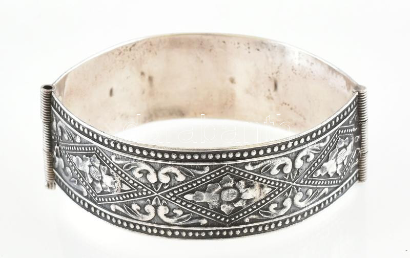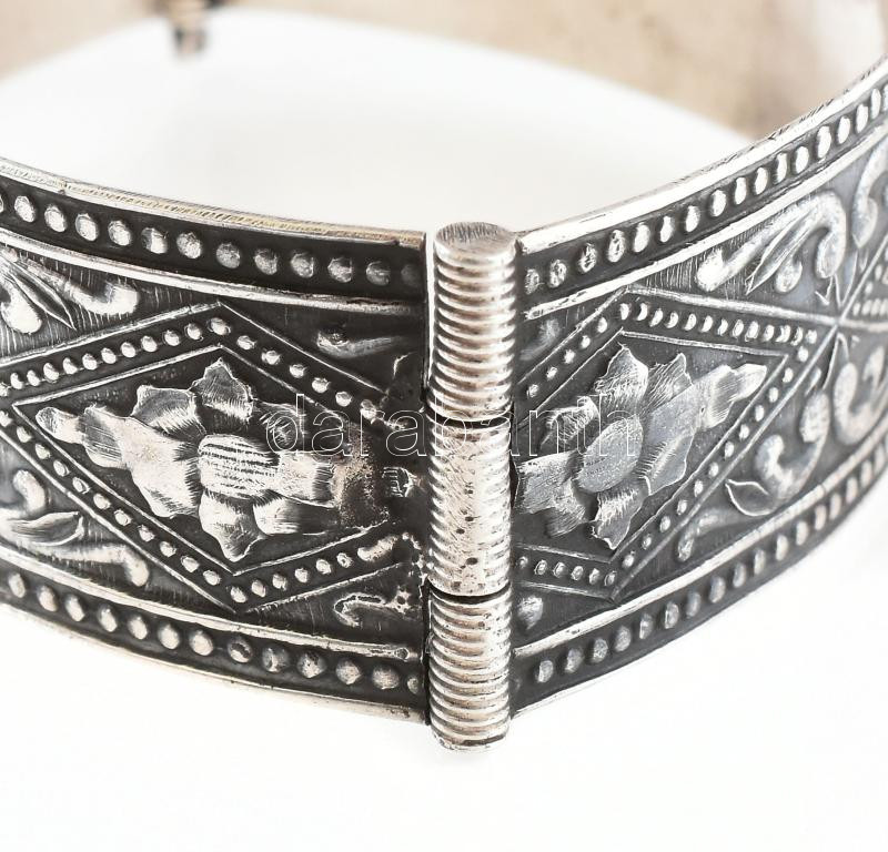 Ezüst(Ag) orosz karperec gazdagon díszítve, jelzett, 5,5×7 cm, nettó: 39,4 g