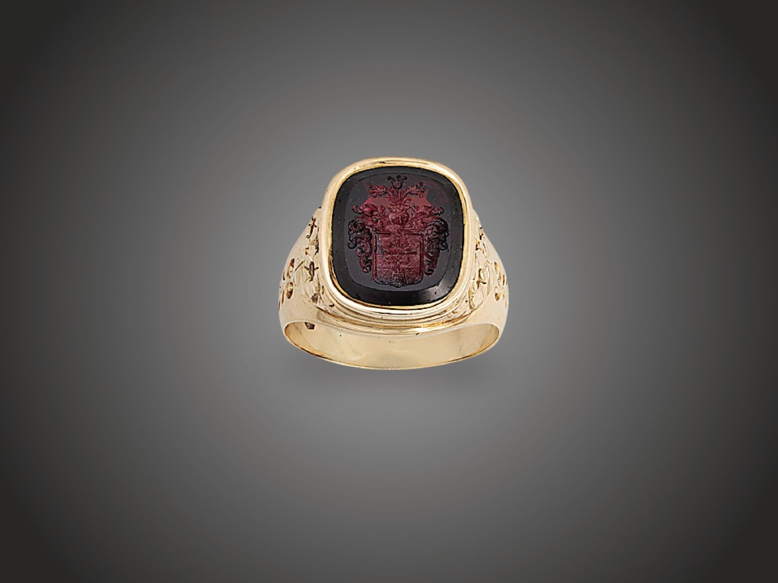 almandin díszítéssel, rózsamintás gyűrűvállal, Bécs,_x000D_