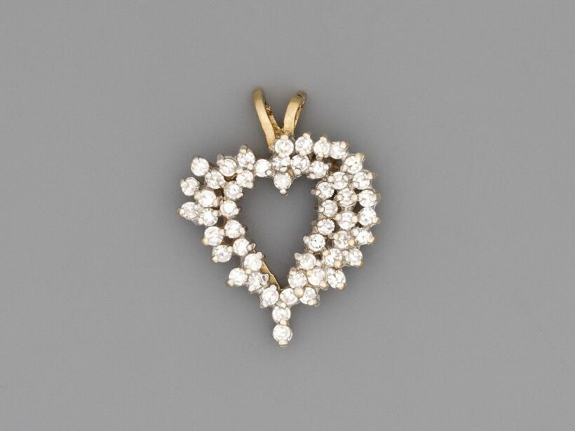 Arany 585, aszimmetrikus szívforma, 49 karmos foglalású