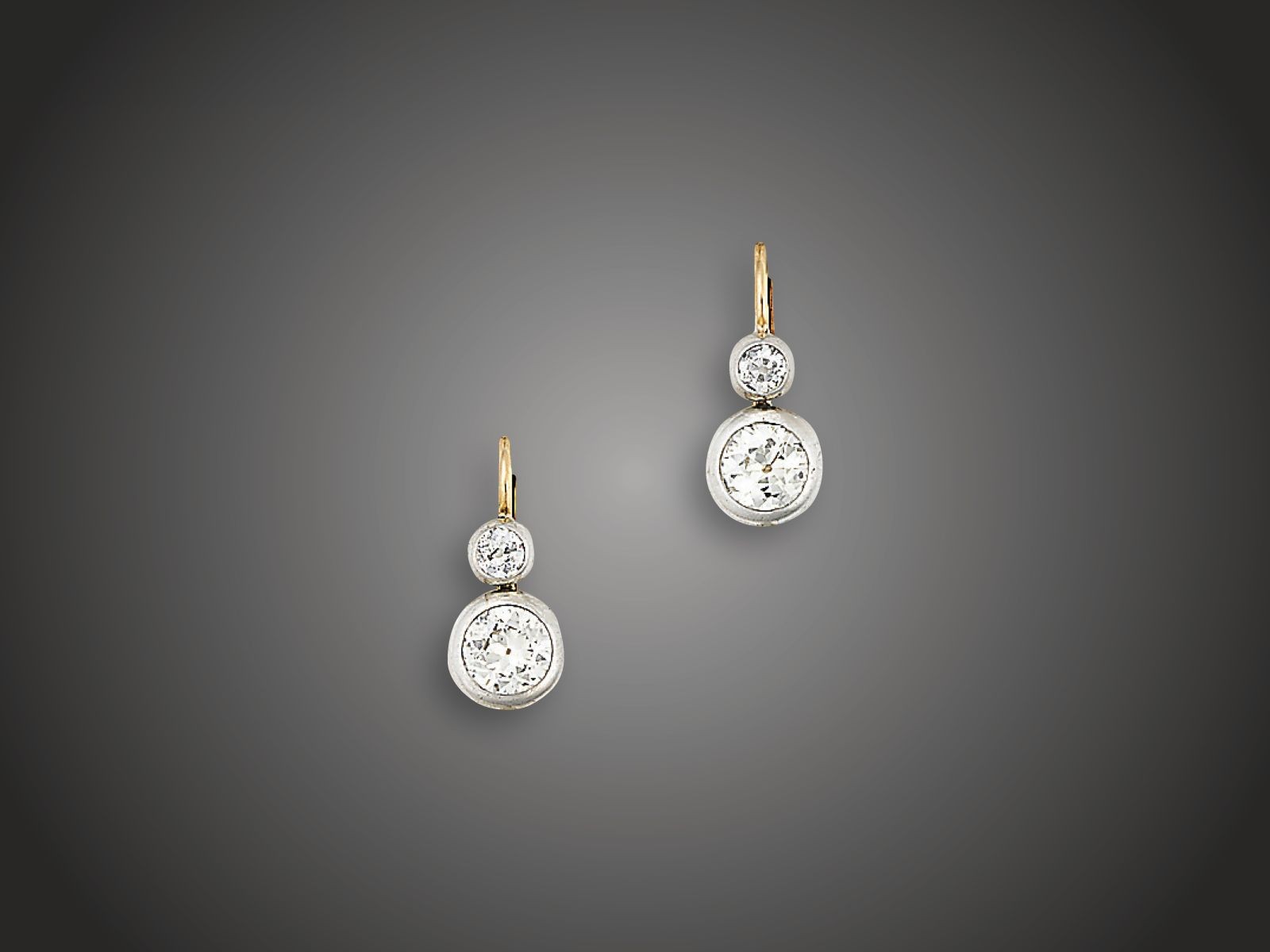 Kikiáltási ár: 65 000 FtBriliáns fülbevalópár Fehérarany 585, buton foglalt 4 szabályos régi csiszolású briliáns cca. 1,00 ct, J, SI1-P1, patentzárral, 2,9 g