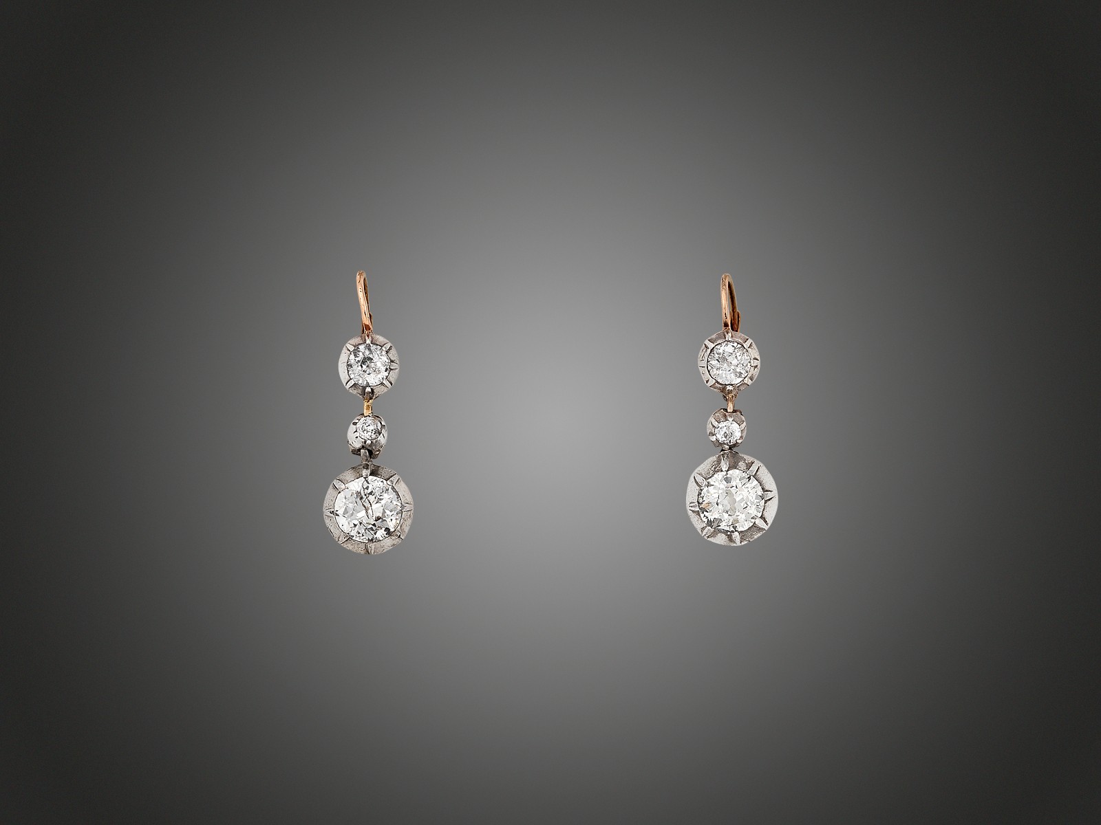 Kikiáltási ár: 40 000 FtBriliáns fülbevalópár Fehérarany 585, buton foglalt 4 szabályos régi csiszolású briliáns cca. 1,00 ct, J, SI1-P1, patentzárral, 2,9 g
