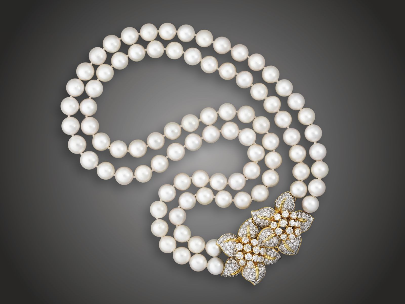2 sor csomózottan fűzött tengeri tenyésztett gyöngy,_x000D_