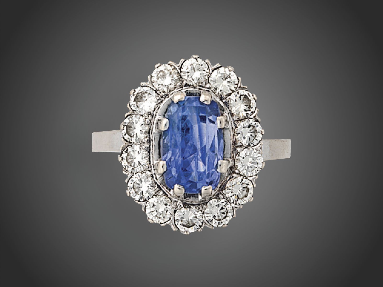Fehérarany 585, karmos foglalatban 1 zafír cca. 2,50 ct_x000D_
