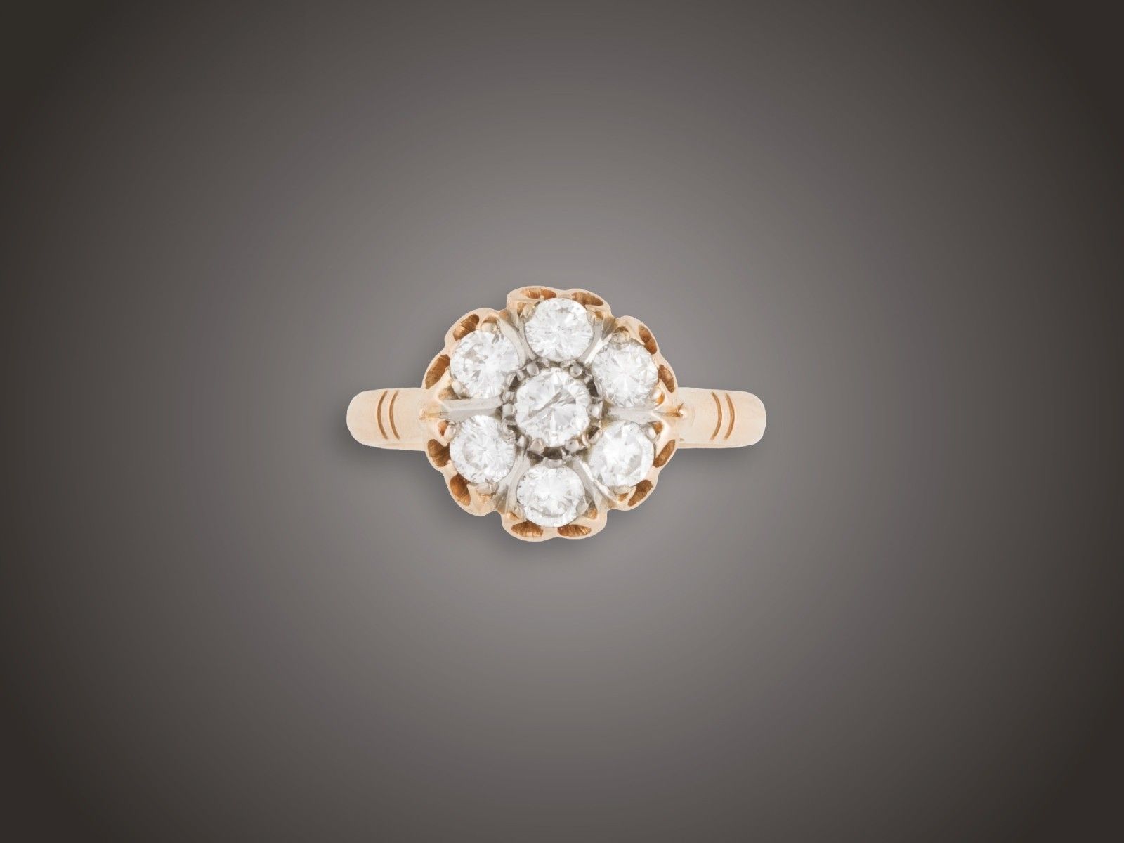Gyűrű, 585 au, 7 bril. cca. 0,75 ct, 4,1 g