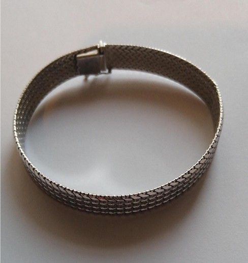 Kikiáltási ár: 3 700 FtSzép állapotúm modern ezüst női karkötő, súly: 24,30 gramm, Jelzés: 835, sűrű mintázatú
