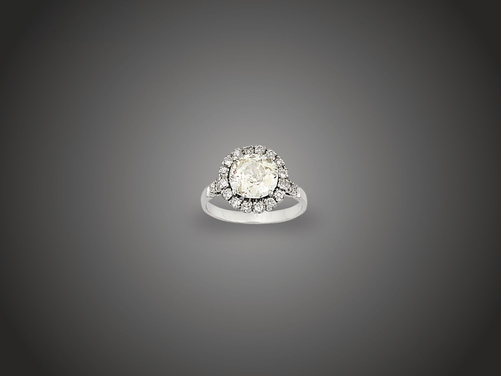 Kikiáltási ár: 220 000 FtSzoliter gyűrű Arany 375, 1 nagyobb, régi csiszolású briliáns cca. 0,50 ct, K, P1, 2,7 g, méret: 57
