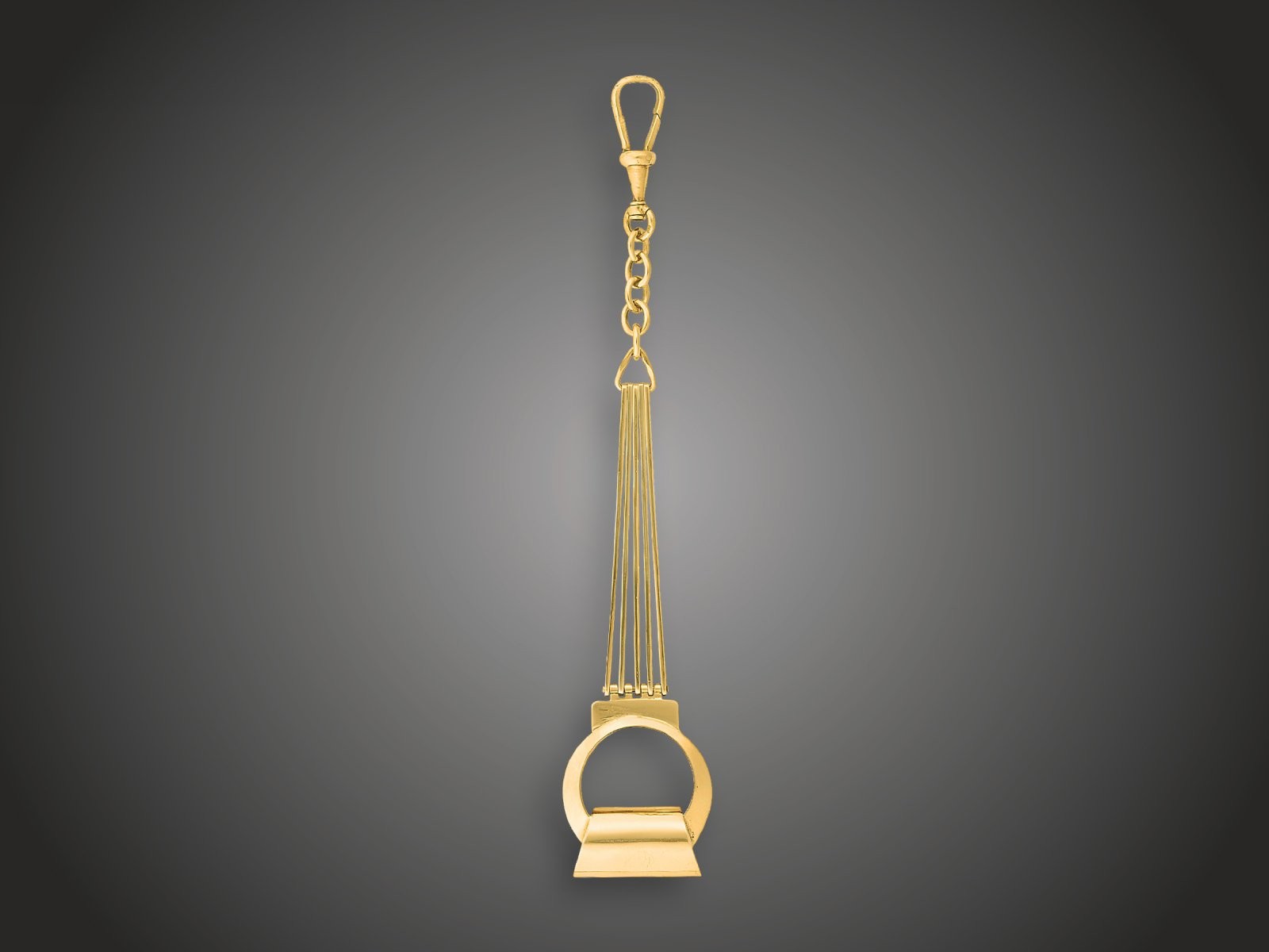 Arany 585, kengyelforma, rövid láncos karabiner véggel, Budapest, 1940 körül, 11,3 g, hossz: 12 cm
