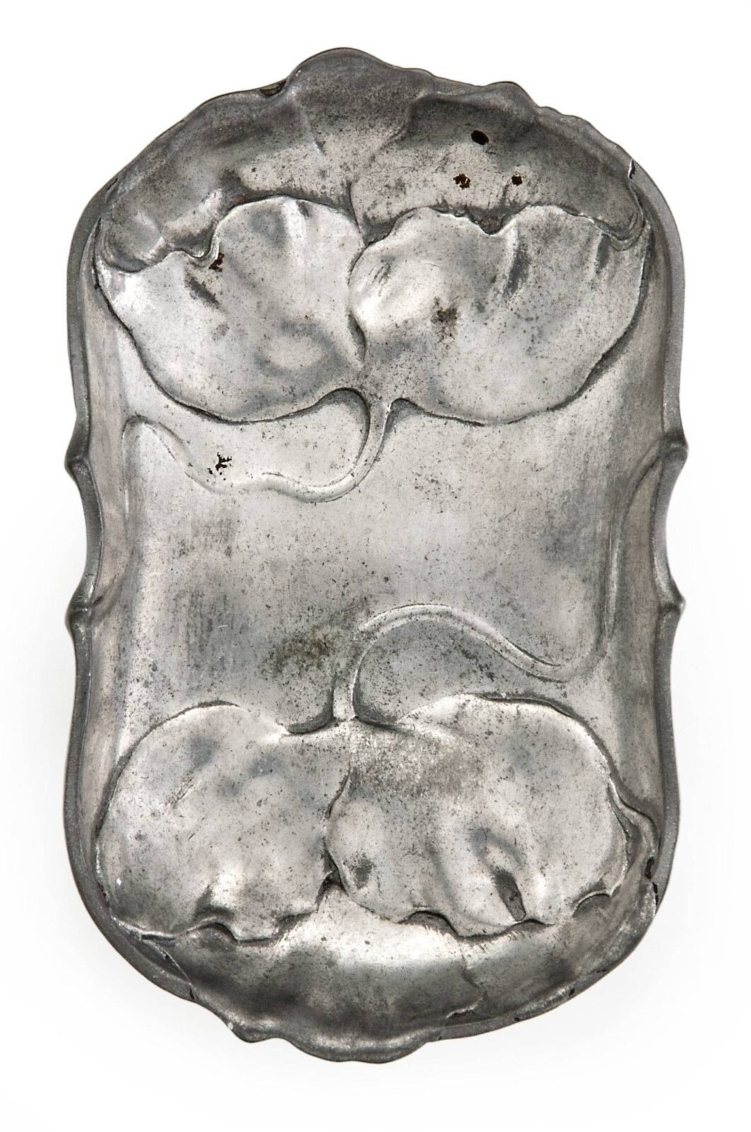 osztrák, 1900 körül, ón, vízililiom motívummal, 8*13,5 cm