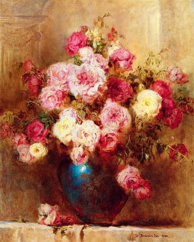 104. tétel, Nagy rózsás csendélet eozin vázában, 1944