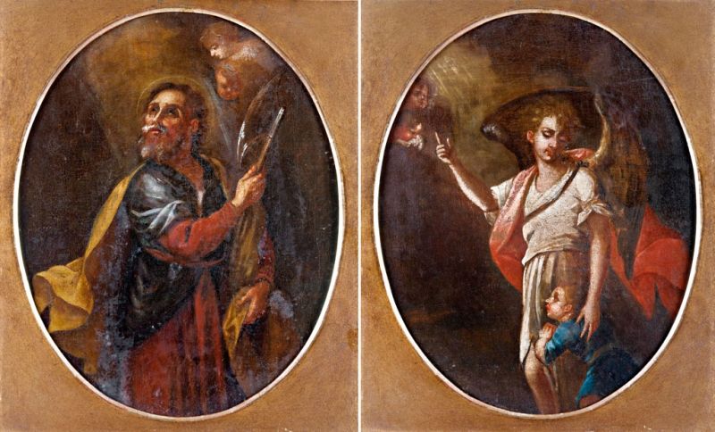 121. tétel, Osztrák festő, 18. sz. vége: Mátyás apostol, hátoldalán: Őrangyal