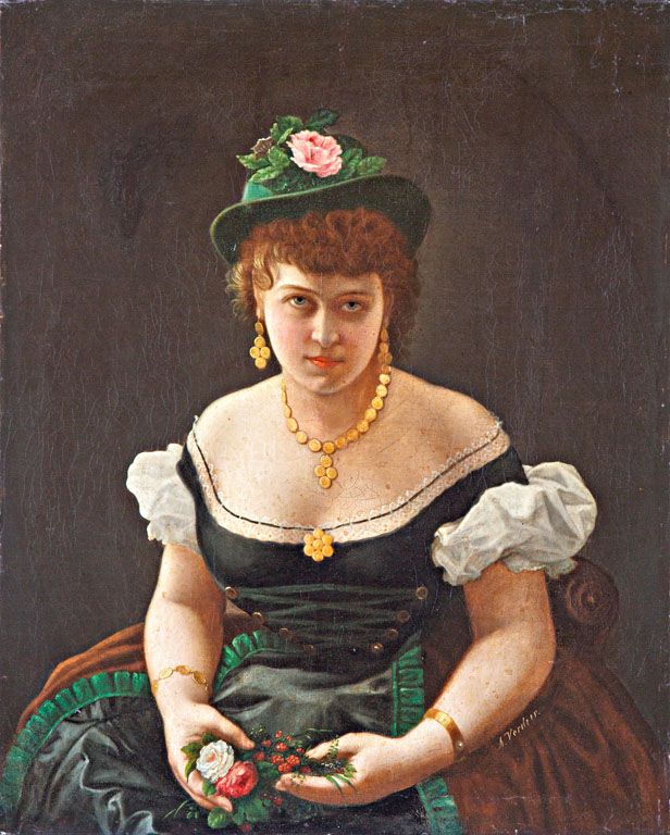 144. tétel, Verdier, Aymar (1819-1880): Kalapos hölgy virágokkal
