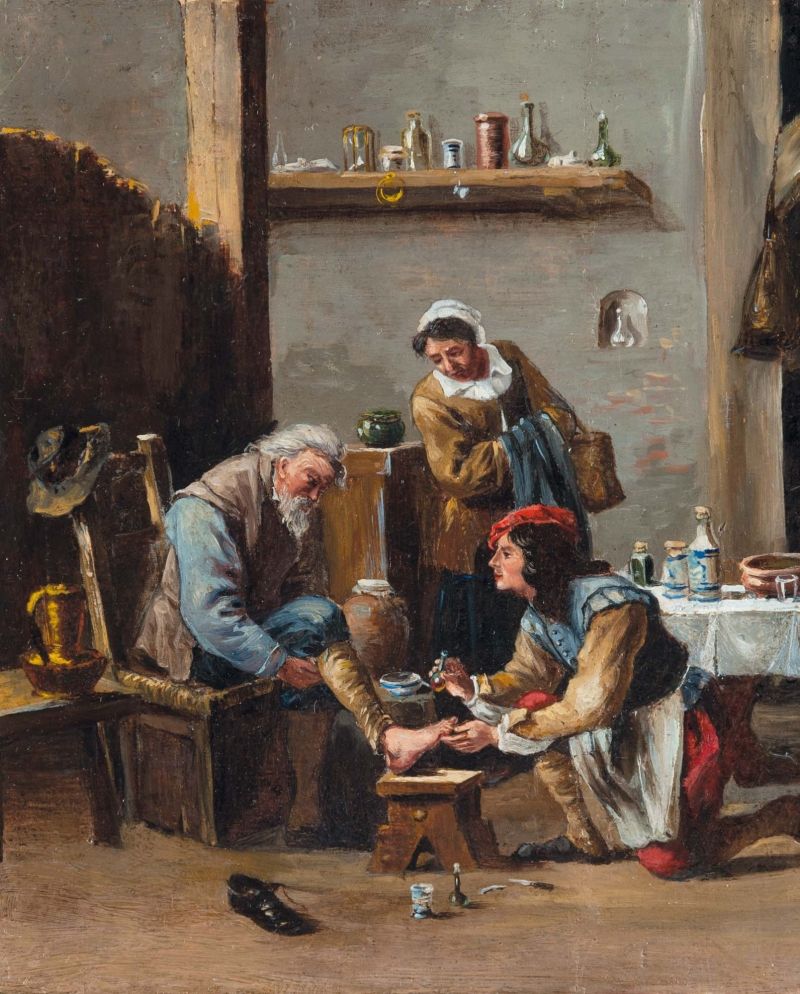 176. tétel, Teniers, David (Antwerpen, 1610-1690) után, 19. sz. vége: Házi orvoslás