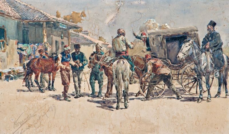 179. tétel, Bosnyák festő, 19. sz. vége: Fogadónál