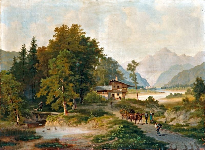 185. tétel, Osztrák festő, 19. sz. második fele: Alpesi táj
