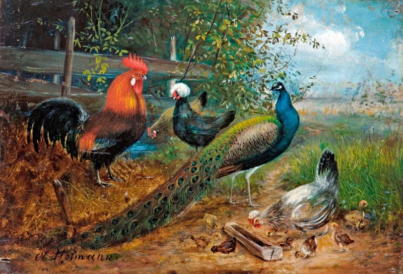 188. tétel, Hofmann, A. jelzéssel, 19. sz. második fele: Tyúkok és páva