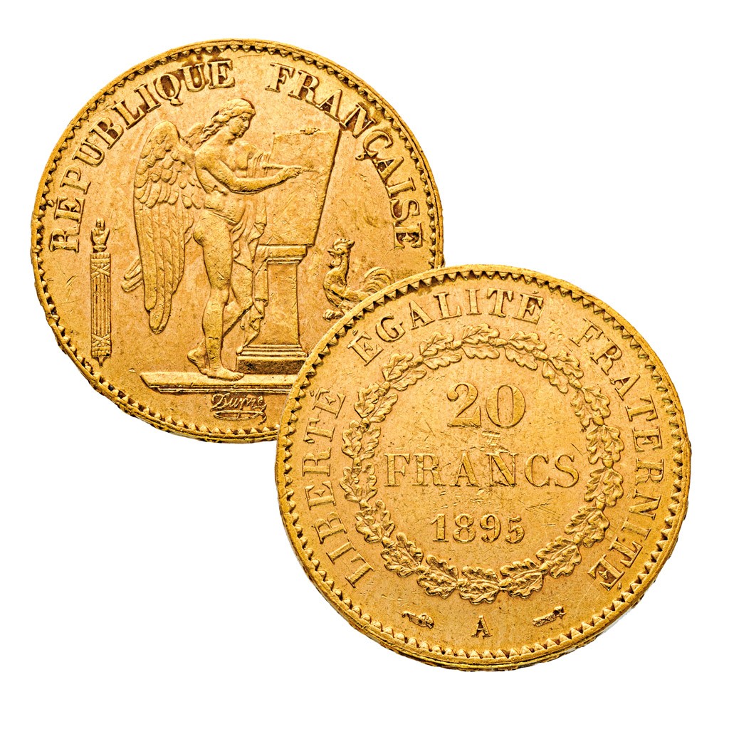 francia, 1895, párizsi veret, 22 k arany, Duprié tervezőszignóval, "Dieu Protege La France" peremfelirattal, kopott, 6,4 g; d: 21 mm