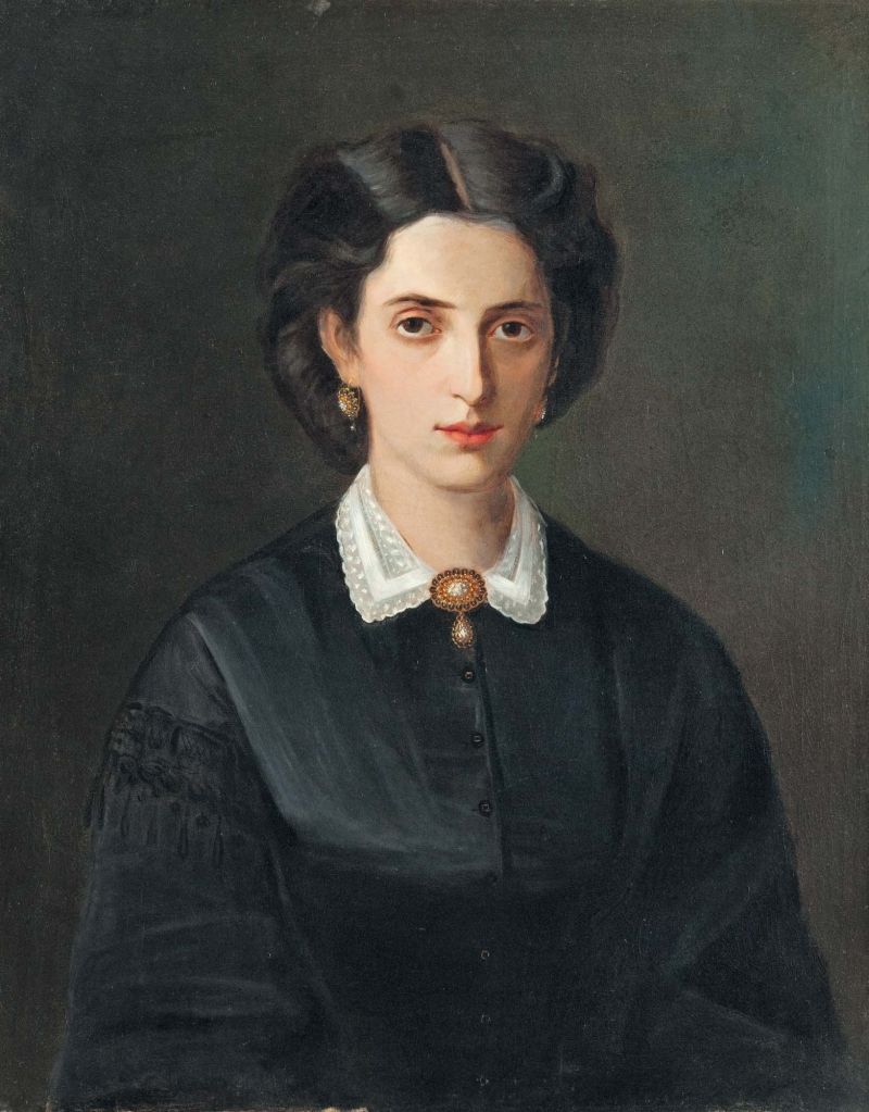 247. tétel, Osztrák festő, 19. sz. vége: Csipkegalléros hölgy portréja