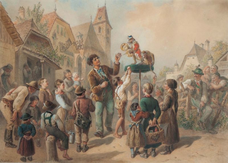 275. tétel, Goebel, Carl (1824-1899): Mutatványos majmaival